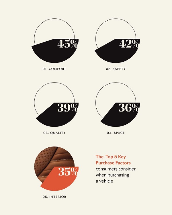 According to the 2025 Automotive Interior Materials Research with NielsenIQ global consumers ranked interior as fifth in key purchase factors and prioritized comfort first.