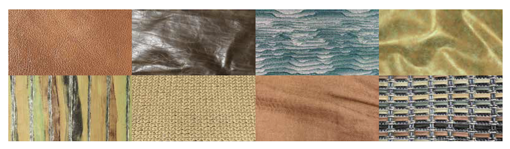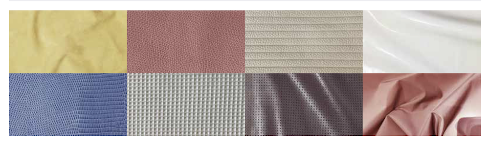 Materials Full grain leathers with a natural drape / Structured, grained leathers / Patent leathers / Sporty, stretch, technical nubucks / Smooth calf with a mirrored finish / Lightweight technical leathers with microfiber backings / Leathers with geometric embossings / Luxury, microperforated sport leathers / Lizard skins and shagreen / Bi-material lambskin and technical canvas / Nylon canvas with a coloured coating / 3 D breathable mesh / Structured, workwear-inspired, cotton twills / Metallic, brushed parachute nylons / Lacquered wickers