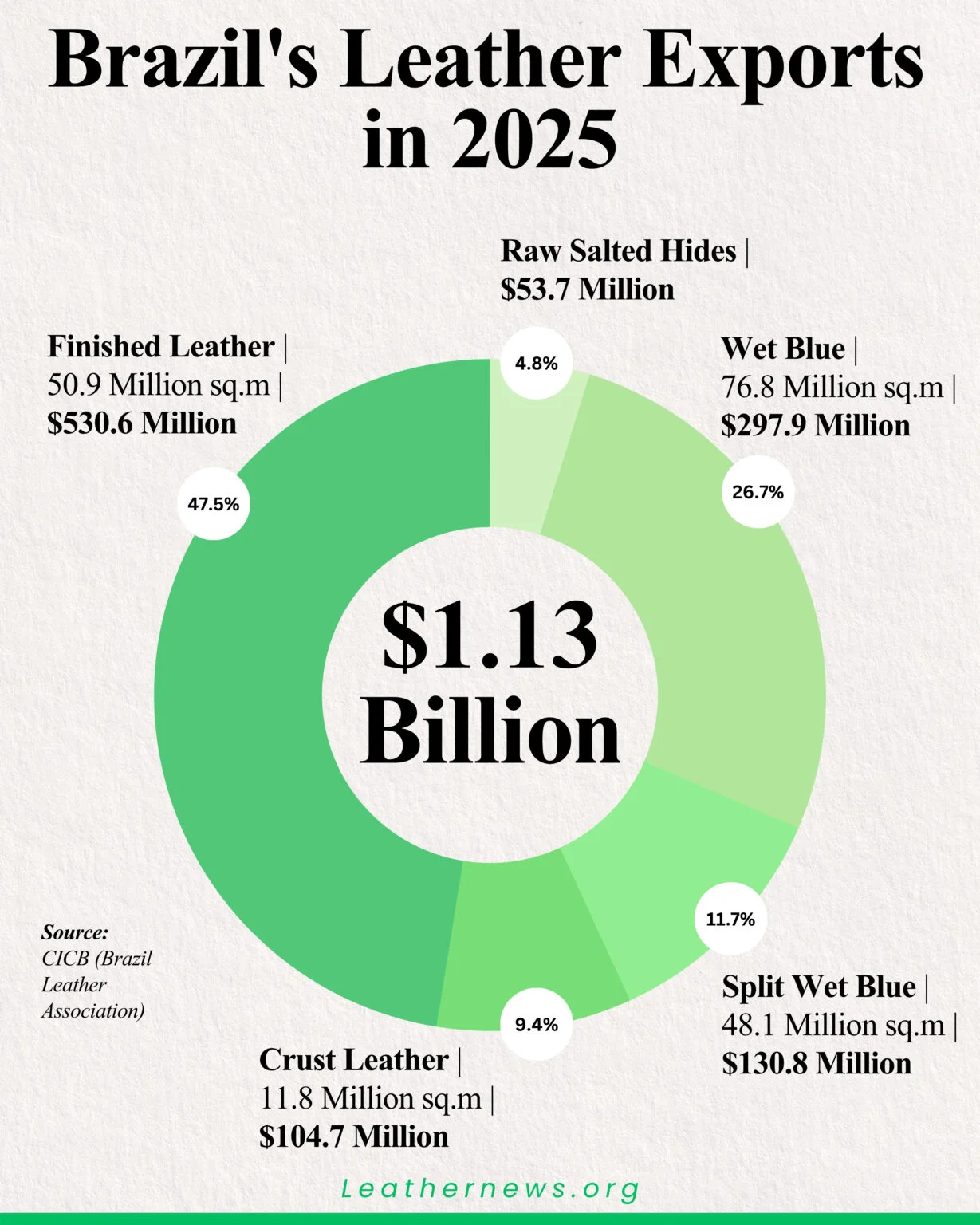 9 April 2026 Brazil Leather Exports Fall 9.8% to $1.13 … 继续阅读Brazil Leather Exports Fall 9.8% to $1.13 Billion in 2025: Full Breakdown by Product Type and Destination